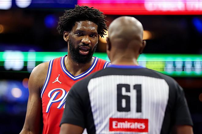 恩比德被罚5万美元!打成2+1后做不雅手势大帝回应裁判也该罚