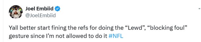 | 北京时间11月3日,NBA官方宣布,76人中锋乔尔-恩比德因“在比赛场上做出不雅手势”,被联盟罚款5万美元。该手势发生在76人1分惜败凯尔特人的比赛首节。恩比德打成2+1后做了这个手势。
