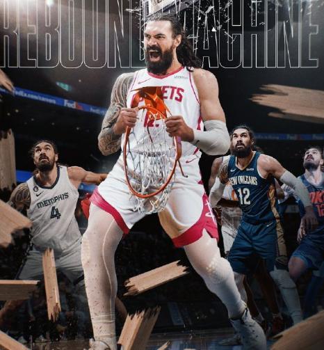 火箭内线最可靠之人不是申京数据表明亚当斯前场篮板联盟第一!
