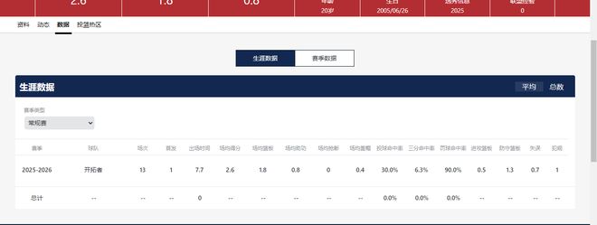 进攻层面 杨瀚森的三分投射极不稳定,目前场均命中率只有6.3%。 低位单打是主要得分手段,而这一技术恰好是队内另外两名中锋克林根、罗威所不具备的。