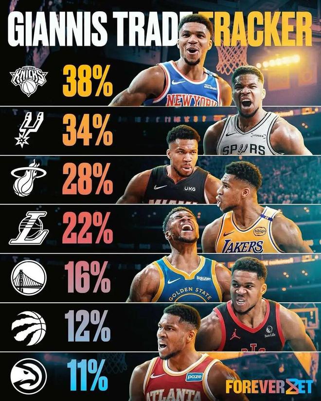 同样来自Shams的报道,字母哥与雄鹿(10胜15负,东部第十)的结局已定,即他会进入交易市场,尼克斯(16胜7负,东部第二)乃其最热门的新下家,当然其他队伍也能参与进竞价之中。