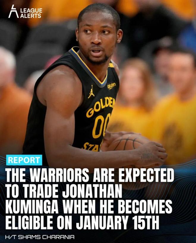 一样根据Shams的消息源,勇士(13胜12负,西部第八)计划在明年1月16日探讨库明加交易价值,希望能用他来升级阵容。