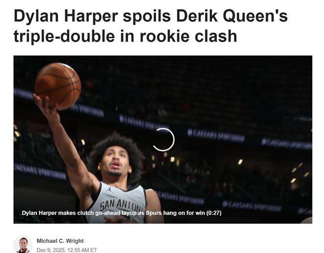 面对奎因这样的表现,名记Marc J. Spears发文精准点评道:“奎因错失绝杀,遗憾不敌马刺,但奎因无疑是25年选秀最大遗珠。”