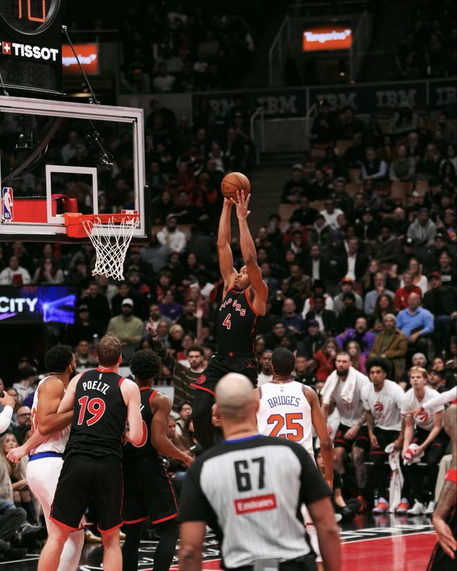 | 北京时间12月10日,NBA新赛季NBA杯迎来1/4决赛,纽约尼克斯队(17胜7负)继续连胜晋级NBA杯四强。布伦森得到35分,哈特得到21分和6个篮板,他们率队依靠第二节攻势一举确立大比分优势,尼克斯队在客场以117-101大胜多伦多猛龙队(15胜11负)。尼克斯队拿到4连胜,猛龙队遭遇4连败。 尼克斯队的布伦森得到35分和4次助攻,哈特得到21分、6个篮板和4次助攻,布里奇斯得到15分、5个篮板和4次助攻,唐斯得到14分和16个篮板,阿奴诺比得到13分和6个篮板,克拉克森得到12分。猛龙队的英格拉姆得到31分、6个篮板和6次助攻,谢德得到18分和7次助攻,巴恩斯得到13分、4个篮板和4次助攻,沃尔特得到13分,珀尔特尔得到10分和9个篮板。