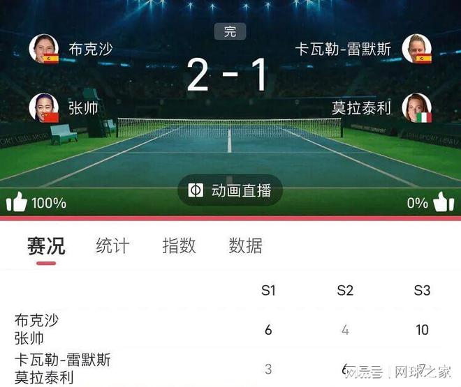 就在球迷和网友们在直播间争得不可开交的时候,张帅在重新调整状态之后,又迅速让大家重拾了对她的信心,以6比3对弗雷德萨姆还以颜色,一举追平了大比分。