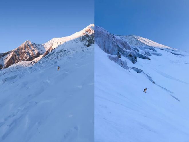 张嘉豪上登与下滑的过程 这道滑行轨迹成为了张嘉豪刻在雪山上的勇气勋章,而他向着光芒的奔赴,是他与热爱的又一次相拥。 回顾张嘉豪的征途,不论是从竞技运动员转型为登滑运动员,还是从冲击冬奥到挑战雪山,他曾在暴风雪中的蜷缩等待,也曾在冰壁前反复试探,他曾因体力透支倒在雪地,也曾因准确判断险中取胜。 沿途的风景不断变换,张嘉豪却在一次次上登与滑行中,看见了更广阔的世界,也读懂了最真实的自己——原来真正的热爱,从不是对终点的执念,而是对每一步前行的坚守。 张嘉豪的故事,从来不止是一个人的追梦史,更是中国新生代冰雪运动精神的缩影。在他的身边,有一群同样热爱雪山的人:有经验丰富的登山向导,有默默支持的装备团队,有并肩作战的队友,还有无数在幕后关注、鼓励着他们的观众。他们之中,有人放弃了安稳的生活,有人扛住了伤病的反复折磨,有人在一次次失败后依然选择重新站起。