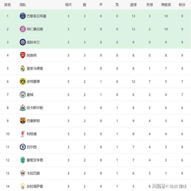 如此看来,全胜的球队中,阿森纳、拜仁慕尼黑和皇家马德里,获得前八名直通16强的机会是很大的,巴黎圣日耳曼和国际米兰想要晋级,难度不小。排名靠后的曼城和多特蒙德,切尔西和巴塞罗那都是晋级的有力争夺者。更靠后,只有5分的热刺,甚至是3分的马德里竞技,如果发挥好的话,也是有机会的。 有些球队擅长前程发力,有些则喜欢后程冲刺,目前排名靠后的球队,谁可以创造奇迹,最终冲进前八名?拜仁慕尼黑和巴黎圣日耳曼,利物浦和皇家马德里,本轮相遇,谁能笑到最后?  |