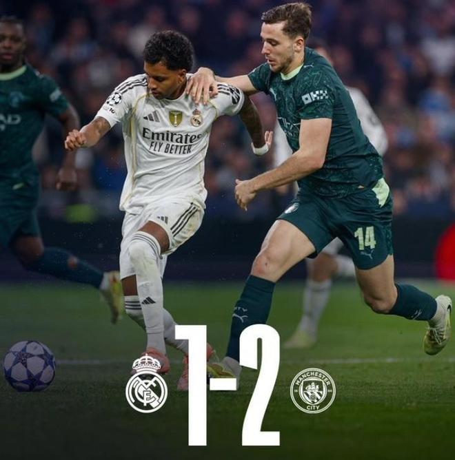 | 伯纳乌又迎来一场冷雨夜!北京时间12月11日凌晨,欧冠联赛阶段第6轮,残阵皇马主场迎接劲敌曼城的挑战。虽然银河战舰依靠着罗德里戈的闪击率先打破僵局,但是曼城凭借奥赖利补射扳平与哈兰德的点球,在半场结束时就将比分反超,最终蓝月亮军团在客场2比1逆转击败皇马。