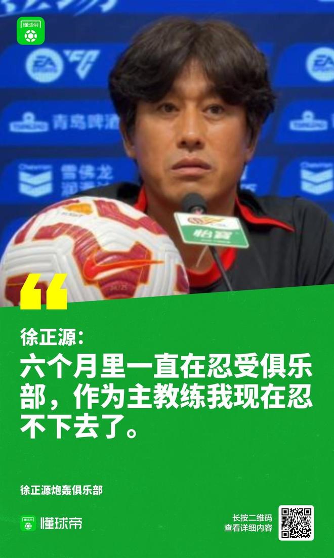 今年7月17日,成都蓉城对阵天津津门虎的赛前发布会,时任成都蓉城主帅徐正源选择公开表达自己对俱乐部的不满。 徐正源表示:“六个月里一直在忍受俱乐部, 作为主教练,我现在忍不下去了,我不能只是袖手旁观。从冬天开始,俱乐部就不信任我们的教练团队,后来还开除了医务组成员、开除了翻译,冬训时所有教练合同都是三月份才签订的。现在我能做的决定很少,下半赛季面临三线作战,但俱乐部没有跟我进行任何沟通,包括球员外租转会我也不知情。作为主教练,我不能容忍这样的情况发生。” 事实上,这位深受成都球迷喜爱的主教练和俱乐部的矛盾已经不是一天两天了。双方就续约和薪资问题一直无法达成一致。在徐正源发布会炮轰俱乐部前,其妻子就已经在社交媒体上控诉球队。 最终,徐正源带队完成了2025赛季的全部比赛,但这依旧没有改变双方分道扬镳的结局。12月18日,成都蓉城官方宣布徐正源离任,并授予他“功勋主教练”称号。