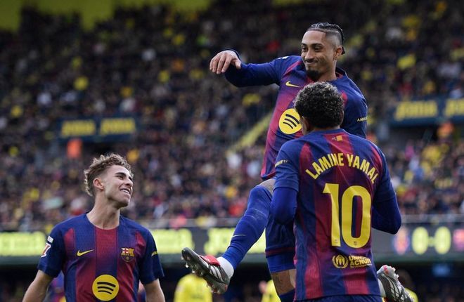 领头羊巴萨也是在客场拿下一场胜利。巴萨此役面对的是实力不俗的比利亚雷亚尔。开场后巴萨踢得有些被动。比利亚雷亚尔接连制造威胁,只是没能把球打进。关键时刻,拉菲尼亚站了出来,制造点球机会,并且罚进点球,帮助巴萨取得领先。而韦加随后因为恶劣铲人动作,被直接红牌罚下,让比利亚雷亚尔少一人作战。下半场亚马尔进球扩大比分,把最终的比分定格为2-0!巴萨这场比赛赢得并不轻松,多亏了霍安-加西亚的屡次神扑,才让巴萨能够化险为夷,有惊无险赢下比赛。