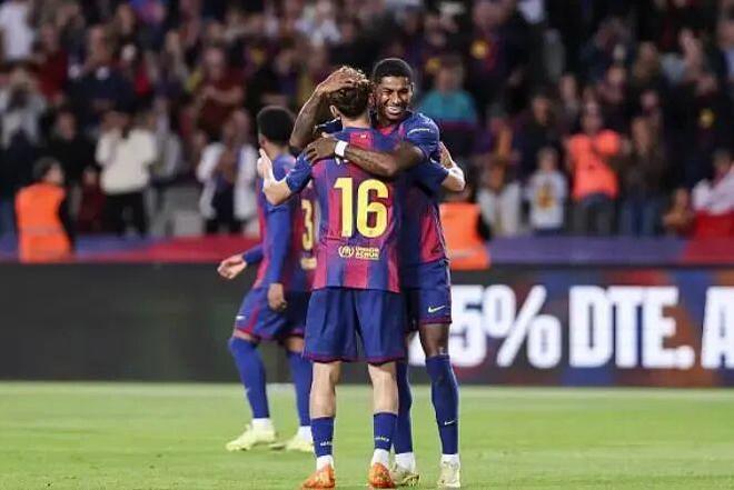 开赛之后巴萨迅速就进入状态,这一点的确是可喜的,看的出他们对比赛的认真。第9分钟在高压逼抢之下对手在出球时失误,给巴萨打出了迅速反击的机会。巴尔德抢截后给到了亚马尔,拿到了射门机会的年轻人一扣一射在时机上的确是淋漓尽致的展现了自己的天赋的,确实很有实力。 就此,巴萨1-0的。
