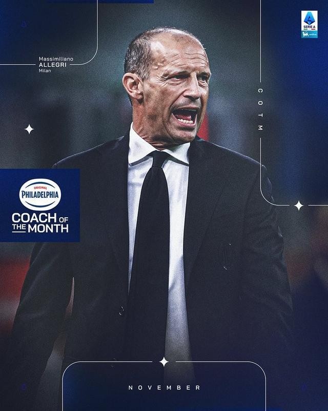 | 北京时间12月12日,意甲官方宣布,AC米兰主帅阿莱格里当选联赛11月最佳球员。