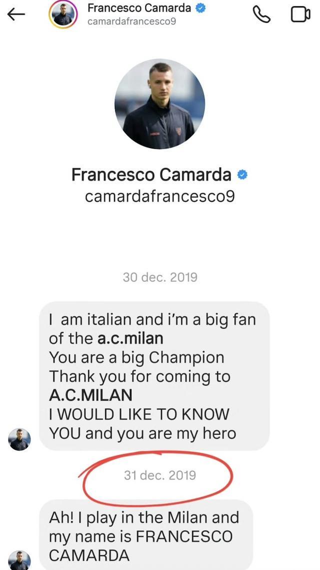 米兰外租小将卡马尔达斩获意甲首球,伊布翻出了他11岁时给自己发的私信。 在莱切主场2-2战平博洛尼亚的意甲第5轮比赛中,17岁的米兰外租小将卡马尔达斩获个人意甲生涯首球。 北京时间9月30日凌晨,伊布在社交媒体发布了一张卡马尔达在11岁时给自己发的私信截图,并配文:“2019年12月31日:我的名字是弗朗切斯科-卡马尔达 2025年9月28日:现在知道你名字的不止是我,而是所有人” 截图显示,卡马尔达在2019年12月通过社交媒体给伊布发了私信,他写道:“我是意大利人,也是AC米兰的忠实球迷。你是伟大的冠军,谢谢你来到AC米兰。我很想认识你,你是我的英雄。” “啊!我也在米兰踢球,我的名字是弗朗切斯科-卡马尔达。 |