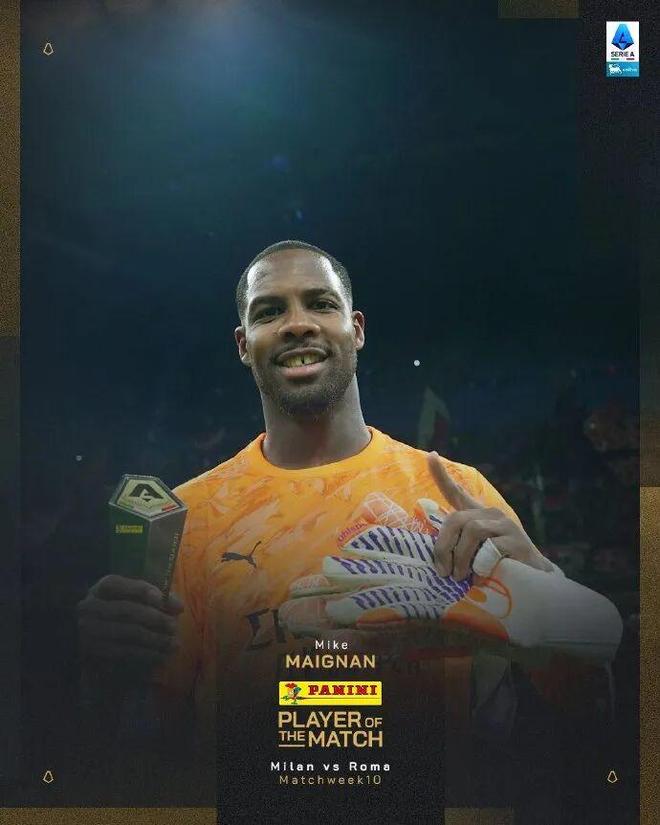 |   米兰圈 在本轮意甲,米兰1-0击败罗马。本场比赛米兰门将迈尼昂发挥出色,贡献7次扑救,赛后他也当选意甲官方评选出的本场最佳球员。