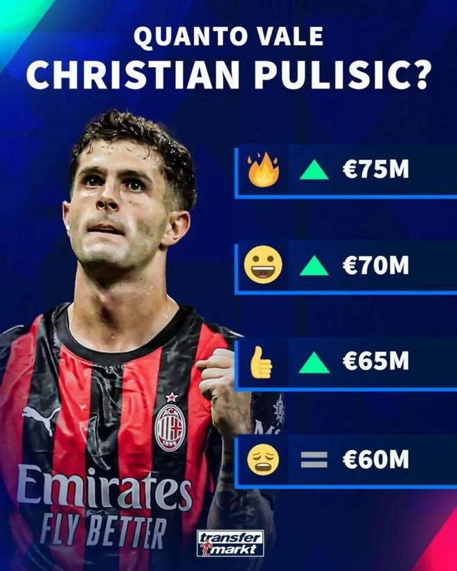 | 米兰圈 德国转会市场预热普利西奇的身价变化,最高可能达到7500万欧元。