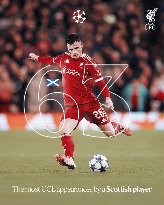 63场,罗伯逊成为92年改制后欧冠出场次数最多的苏格兰球员
