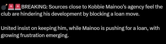 长远而言,除非阿莫林或者梅诺中的一个人彻底改变自己,阿莫林改变阵型,或者梅诺改变作风。否则这位曼联天才1月份留队只会带来更大的裂痕,如球员因为最终落选英格兰队的世界杯大名单而与主帅反目成仇,而不是新的机会。 |