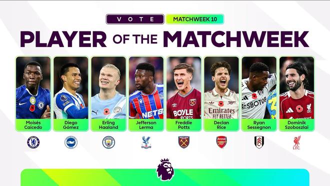 英超第10轮最佳球员候选:赖斯、哈兰德、索博、凯塞多在列