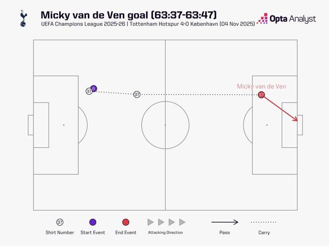 范德芬带球奔袭67.7米破门,为有统计以来欧冠最长