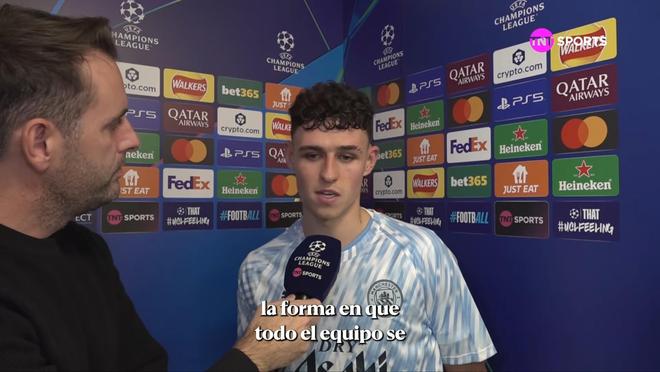 | 本赛季欧冠联赛阶段第4轮,曼城主场4-1战胜多特蒙德。福登接受了TNT体育的赛后采访。