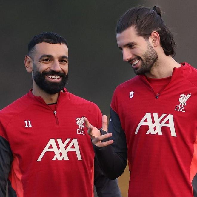萨拉赫照常参加利物浦训练备战,和队友有说有笑