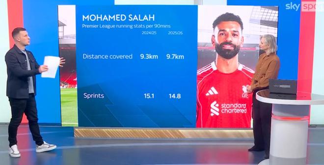 萨拉赫上赛季英超每90分钟跑动9.3公里,本赛季9.7公里