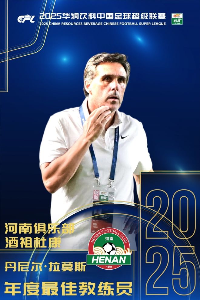 年度最佳教练:拉莫斯(河南队) 丹尼尔-拉莫斯于今年4月底接手河南队,率领河南队各赛事27场12胜6平9负,河南队最终排名本赛季中超第10,收获足协杯亚军。
