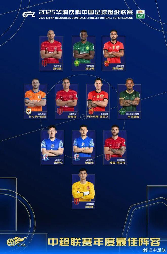 【最佳阵容】 中超联赛:前锋:法比奥(北京国安)、莱昂纳多(上海海港)、费利佩(成都蓉城)中场:卡扎伊什维利(山东泰山)、米特里策(浙江俱乐部绿城)、罗慕洛(成都蓉城)、马特乌斯·维塔尔(上海海港)后卫:提莫·莱切特(成都蓉城)、蒋圣龙(上海申花)、朱辰杰(上海申花)守门员:刘殿座(成都蓉城)