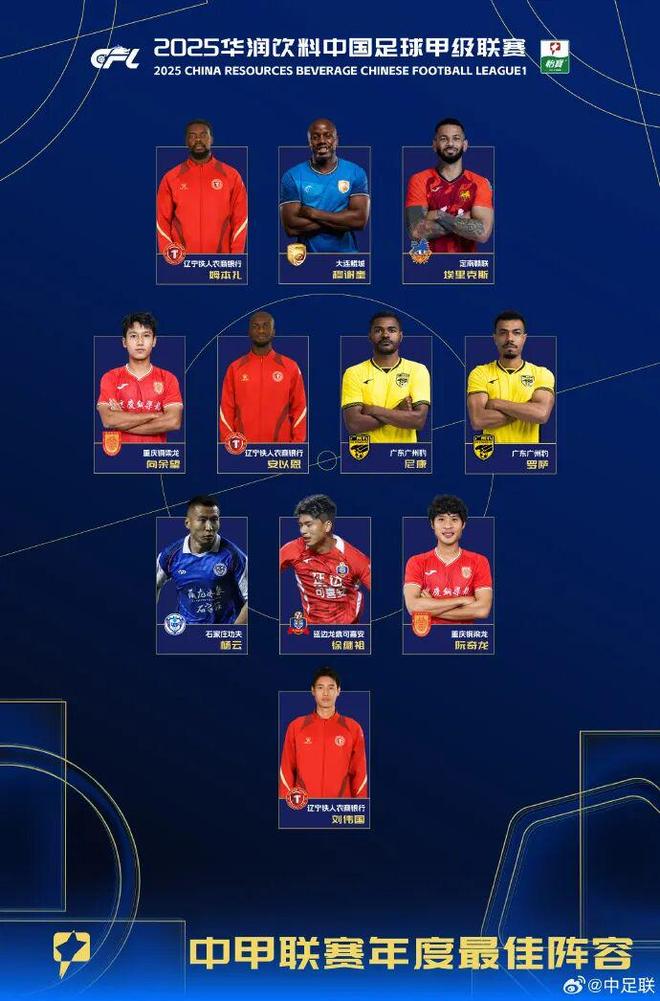 中甲联赛:前锋:姆本扎(辽宁铁人农商银行)、埃里克斯(定南赣联)、穆谢奎(大连鲲城) 中场:安以恩(辽宁铁人农商银行)、罗萨(广东广州豹)、尼康(广东广州豹)、向余望(重庆铜梁龙) 后卫:阮奇龙(重庆铜梁龙)、徐继祖(延边龙鼎可喜安)、杨云(石家庄功夫) 守门员:刘伟国(辽宁铁人农商银行)