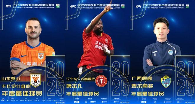 最佳球员和最佳教练员,无疑是颁奖典礼的两个最重要奖项,三级联赛的最佳球员分别是中超的卡扎伊什维利(山东泰山)、中甲的姆本扎(辽宁铁人农商银行)和中乙的费尔南多(广西恒宸)。