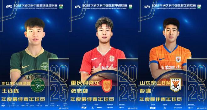 最佳青年球员方面,中超王钰栋(浙江俱乐部绿城)、中甲张志雄(重庆铜梁龙)和中乙彭啸(山东泰山B队)获得这项荣誉。