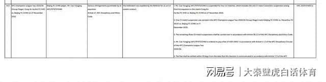 北京时间15日晚间,根据亚足联官方消息显示,北京国安队球员曹永竞因在亚冠二级联赛对阵河内公安的比赛中,参与冲突、从而犯规被染红罚下,将被被处罚禁赛4场,外加罚款1500美元的处罚,具体如下: ①、因恶意犯规染红的曹永竞被停赛4场,其中包括因2025年11月27日河内公安对阵北京国安的比赛中被罚下触发的1场禁赛; ②、4场禁赛里,其中的一场禁赛已在2025/26赛季亚足联冠军联赛第二阶段(小组赛)北京国安对阵麦克阿瑟FC的比赛中执行; ③、剩余的3场禁赛处罚,将根据亚足联纪律与道德准则第38.2.3条予以顺延执行; ④、曹永竞被责令依照亚足联纪律通告第4.1.2条,收到通知后,30日内支付1500美元罚款。