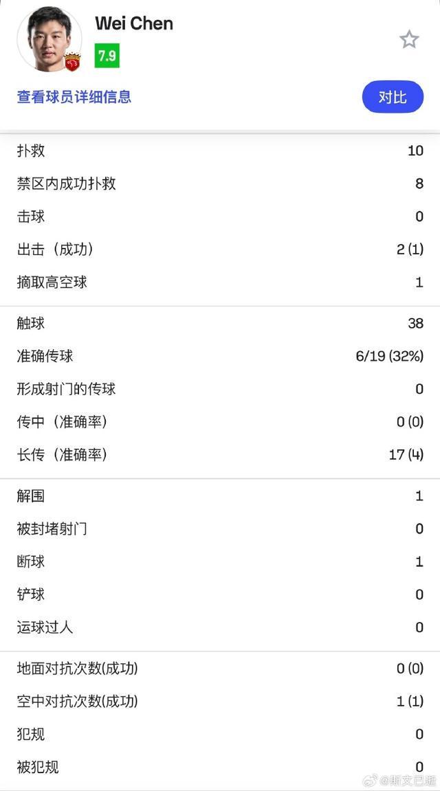 海港队替补门将陈威此役表现神勇。