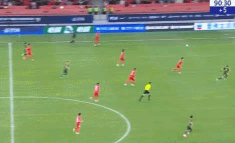 而在伤停补时阶段,越踢越自信的吾米提江再次上演精彩过人。这次是他在后场右路抢断后,面对浙江队近来状态火爆的巴西外援卡列洛,他再次用2个急停变向,成功戏耍对手,卡列洛一度从身后拉都没拉住,足以看出吾米提江细腻的脚下技术和出色的灵活度。
