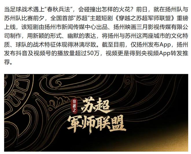 更骚的是,你以为“苏超”只是踢球?人家早就杀进内容赛道了。现在连“苏超”主题的短剧和小说都整出来了。
