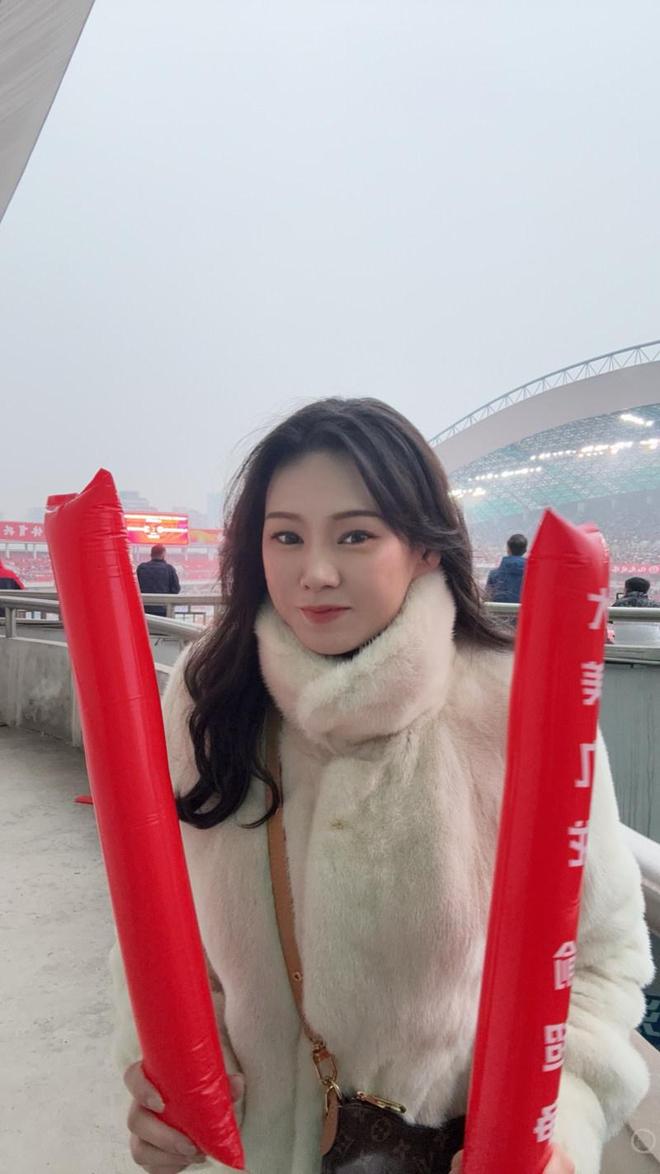 马女士首次到现场看球就碰上了精彩的比赛。受访者供图
