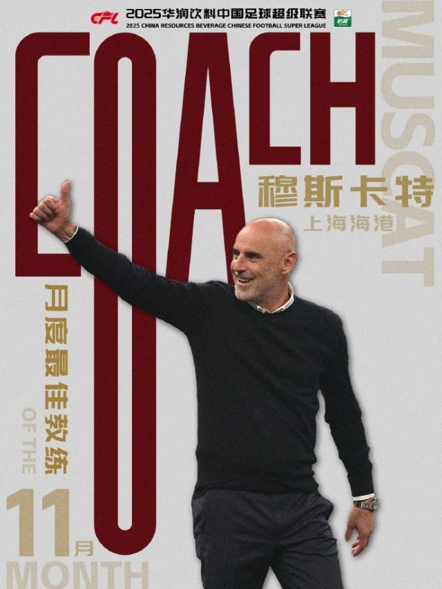 穆斯卡特当选中超11月最佳教练